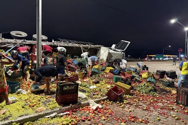 O caminhão transportava uma grande quantidade de frutas, que ficou espalhada pelo local após o acidente. Devido ao estado da carga e ao dano causado pelo tombamento, o motorista autorizou que populares aproveitassem os produtos que ainda estivessem em boas condições para consumo.