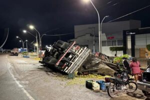 Na noite desta sexta-feira, 18 de julho, por voltas da 23:40hs, um caminhão carregado de frutas que seguia de Juazeiro com destino a Salvador tombou no contorno de Capim Grosso, sentido saída para Feira de Santana, nas proximidades do Posto Monumento.