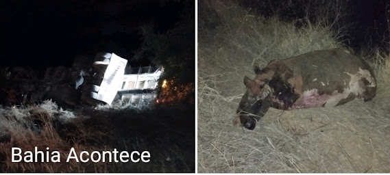 Um caminhão Volks sofreu um acidente na Ba 144, trecho Morro do Chapéu/ Várzea Nova após colidir em uma vaca que transitava na rodovia. O acidente ocorreu no km 279 da rodovia, por volta das 23 horas da noite de quinta, 10/4. Após a batida o caminhão , um Vw 24.330 carregado de beterraba, saiu da pista e tombou no acostamento.