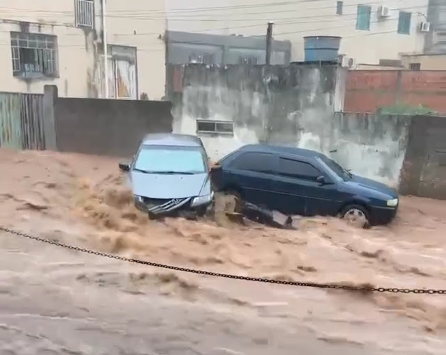 Em poucos minutos, ruas se transformaram em verdadeiros rios, com veículos sendo arrastados pela enxurrada e pessoas tentando se proteger da força da água.