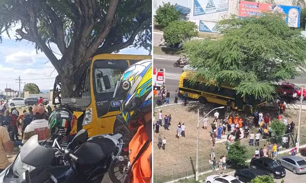 Dez pessoas ficaram feridas depois que um ônibus escolar que transportava mais de 50 estudantes bateu de frente com uma árvore, na tarde desta sexta-feira (15), no centro da cidade de Paulo Afonso, no norte da Bahia.