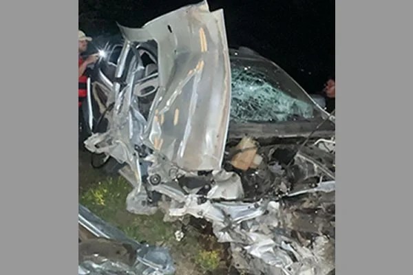 A colisão envolveu uma caminhonete S10 e um caminhão baú. Com o impacto, a S10 teve a parte dianteira completamente destruída, e a roda dianteira direita chegou a se desprender do veículo.