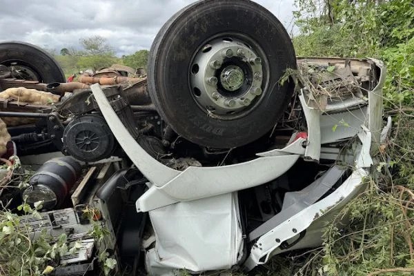 De acordo com as informações iniciais, um caminhão VW/30.330 CRC 8X2, de cor branca e placa RDF-3F16, licenciado em Juazeiro, capotou na chamada Curva do Sebo, já no território do município de Mairi.