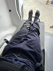 Durante a abordagem, o suspeito reagiu e desferiu um golpe de machado que atingiu a perna esquerda do comandante, provocando um corte profundo na região da coxa e atingindo músculos. Mesmo ferido, os dois GCMs conseguiram imobilizar o agressor, que foi contido até a chegada da Polícia Militar.
