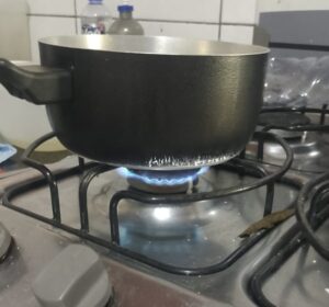 Um fato que chamou a atenção foi a presença de uma panela sobre o fogão ainda aceso, possivelmente colocada com água que acabou secando completamente.