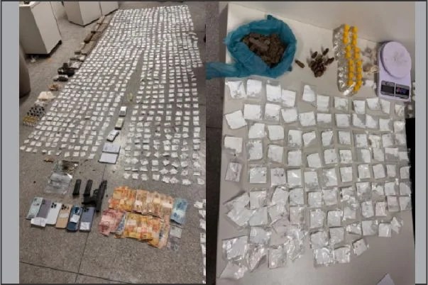Durante as diligências em Queimadas, guarnições do 4º Pelotão/Queimadas, com apoio do PETO da 7ª CIPM, abordaram três pessoas, incluindo o suspeito de participação no crime. No local, os policiais encontraram um grande volume de entorpecentes, além de uma arma de fogo e munições de diversos calibres.