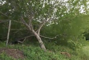Diversas árvores foram derrubadas pela força do vento. Em um único raio de visualização, foi constatada a queda de pelo menos 16 árvores, a maioria conhecida popularmente como “quipé”. Algumas delas caíram sobre estradas vicinais, que ficaram obstruídas por algumas horas, dificultando o tráfego de moradores.